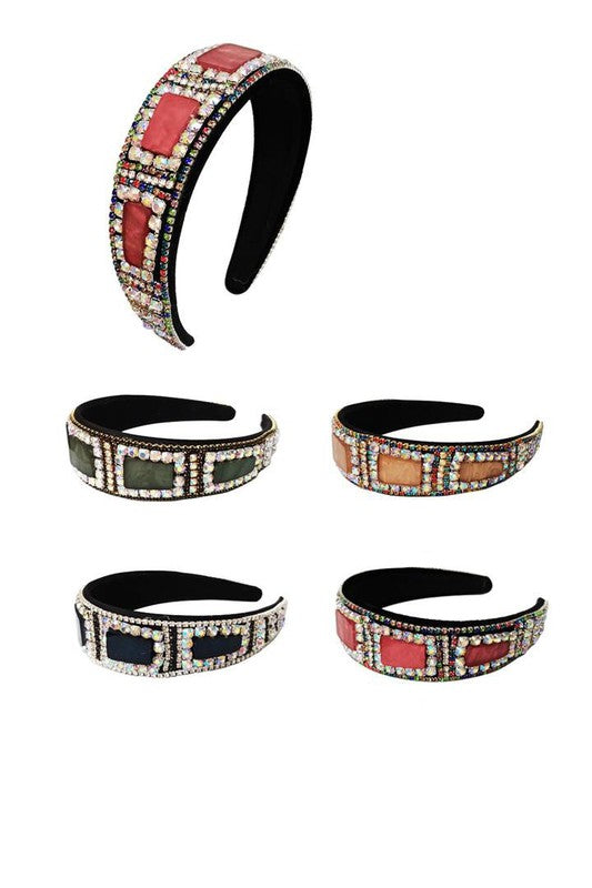 Multi Square Stone Vintage Styled Headband HB1012-28. (12PC)
