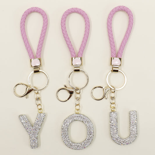Rhinestone Alphabet Initial Letter Key Chain SS51011-40. (12PC)