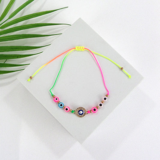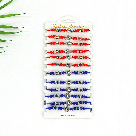 BEAD EVIL EYE CHARM ADJUSTABLE BRACELET 3724-1 (12PC)