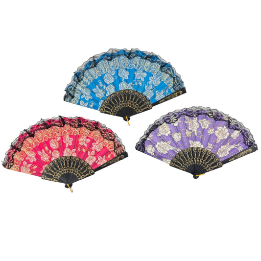 Rose Gold Glitter Lace Trim Hand Held Folding Fan FN4590. (12PC)