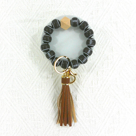 Wooden Sports Baseball Football Beaded Bracelet Key Chain KC4210-1 (1PC)