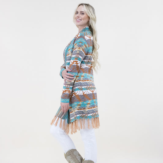 Aztec Bohemian Stripe Pattern Fringed Cardigan FP64092 (2PC)