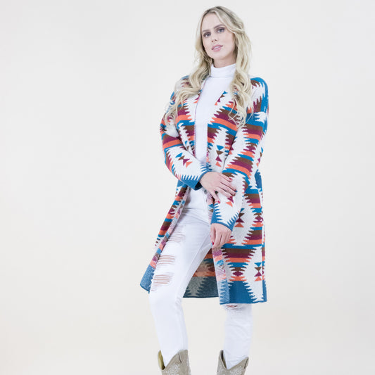 Aztec Print Hoodie Long Cardigan FP64100 (2PC)