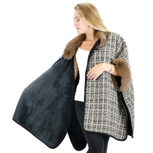 Check Pattern Fur Double Layer Shawl SW3720-2 (2PC)