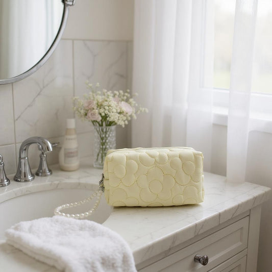 Solid Color Quilted Fabric Makeup Pouch JB5526-5 (12PC)