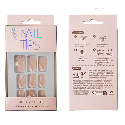 Pearl Decor Rose Squoval Fake Nail Set NA1201-90. (12PC)