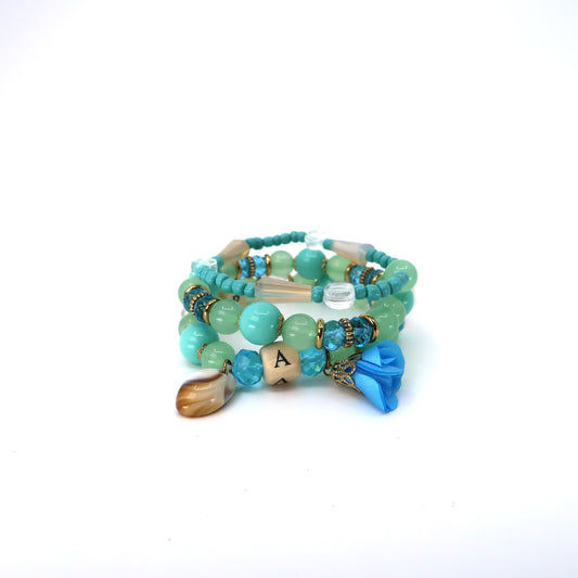 Flower Charm Glass Bead Bracelet BR2521-70.(12PC)