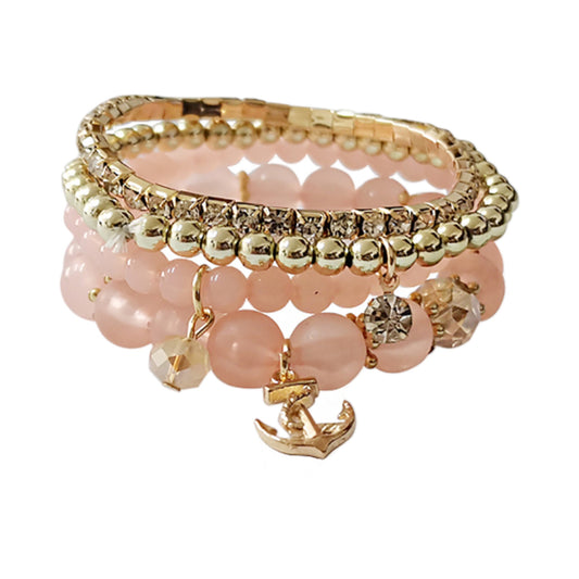 Anchor Charm Gold Bead Bracelet BR2221-18. (12PC)
