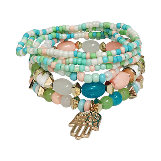 Hamsa Charm Bead Bracelet BR2521-74. (12PC)