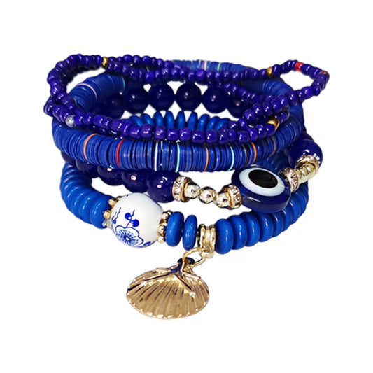 Evil Eye N Shell Charm Bead Bracelet BR2521-49. (12PC)