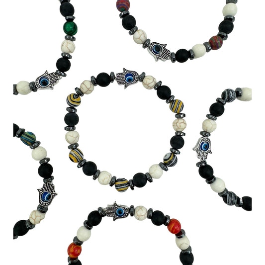 Natural Stone Hamsa Hand Bracelet BR4220-3 (12PC)