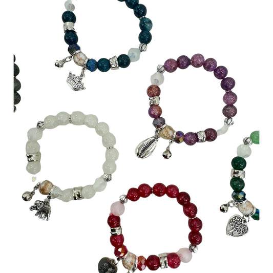 Natural Stone Multi Charm Bracelet BR4226-8 (12PC)