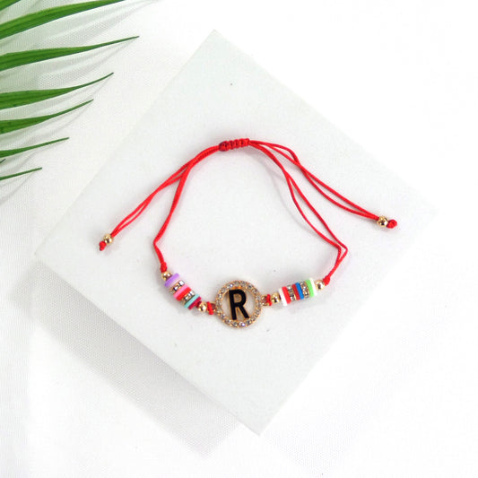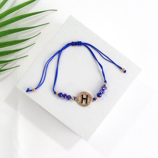 Bead Rhinestone Letter Charm Adjustable Bracelet BR3724-37 (12PC)