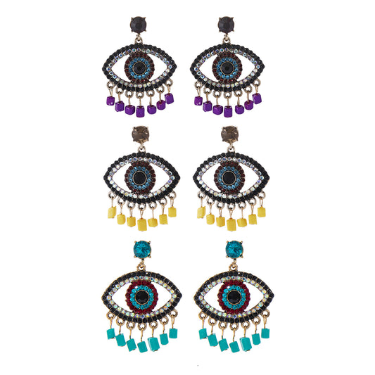 Rhinestone Evil Eye Earring ER904-15(12PCS)