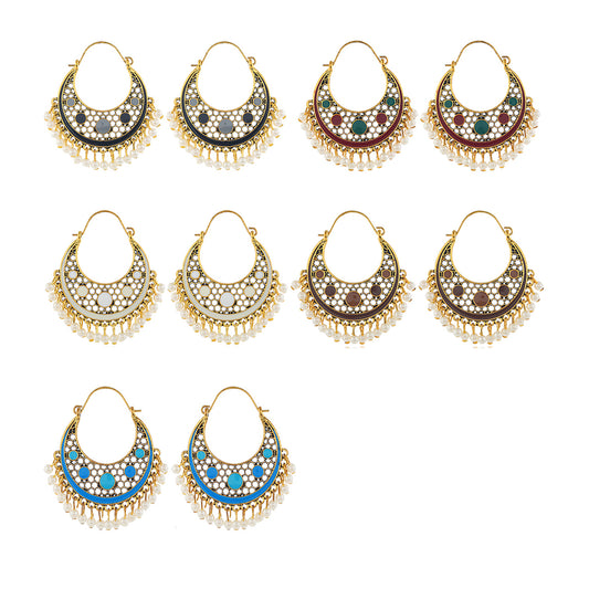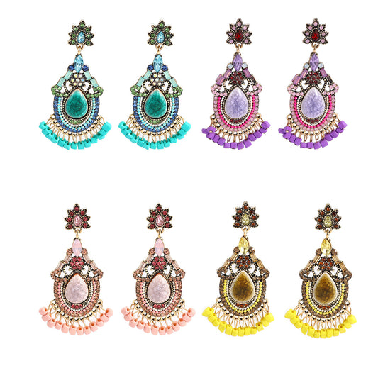 Color Stone Tassel Earring ER904-12 (12PCS)
