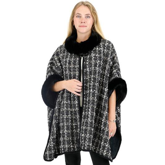 Check Pattern Fur Fringed Shawl P177. (6PC)