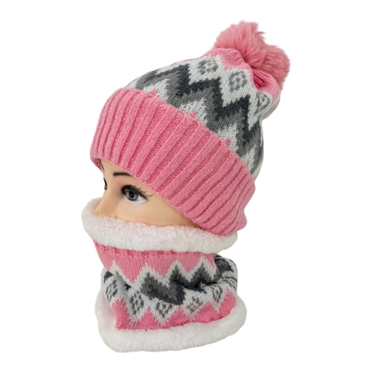 Pom Pom Knitted Beanie With Neck Warmer JH4730-4(12SET)