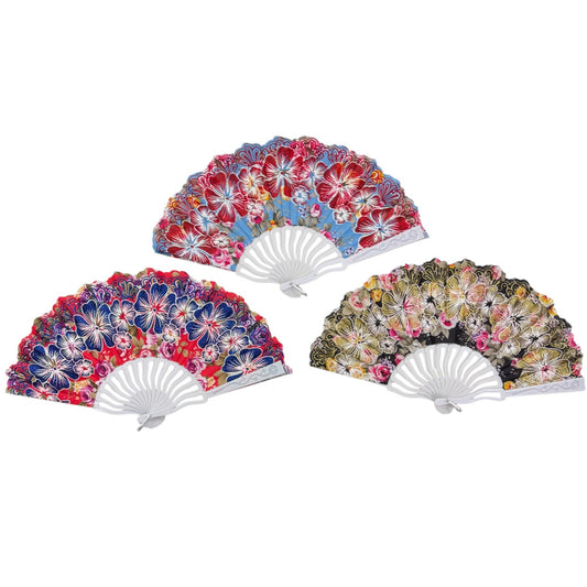 Peony Floral Glitter Hand Held Folding Fan FN0441 (12PC)