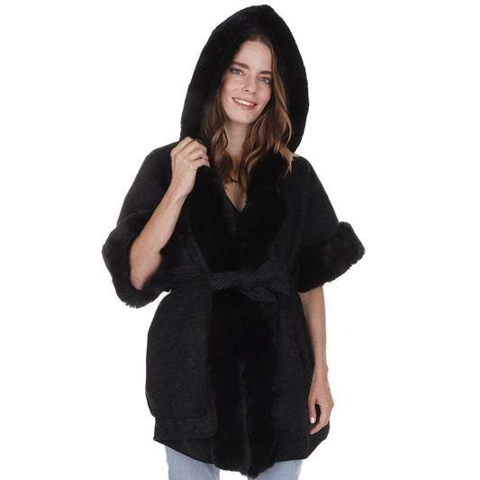 Faux Fur Hoodie Shawl P3802 (1PC)