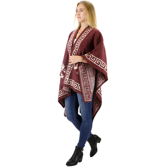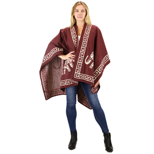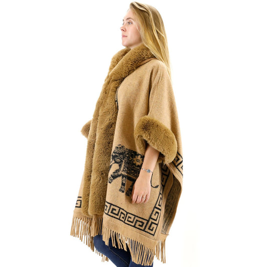 Elephant Pattern Fur Fringed Poncho P191 (12PC)