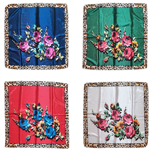 Satin Scarf Rose Leopard Edge Pattern ST4908-18 (12PC)