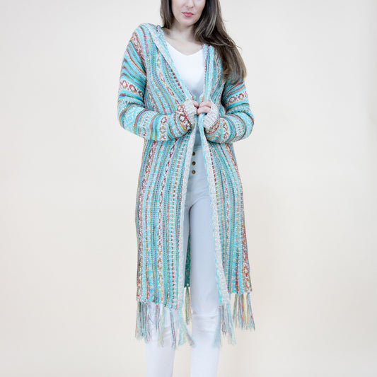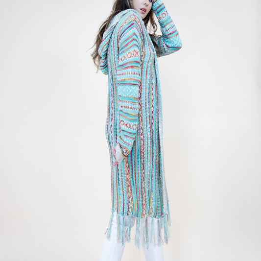 Aztec Bohemian Stripe Pattern Fringed Cardigan FP64092. (2PC)