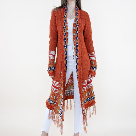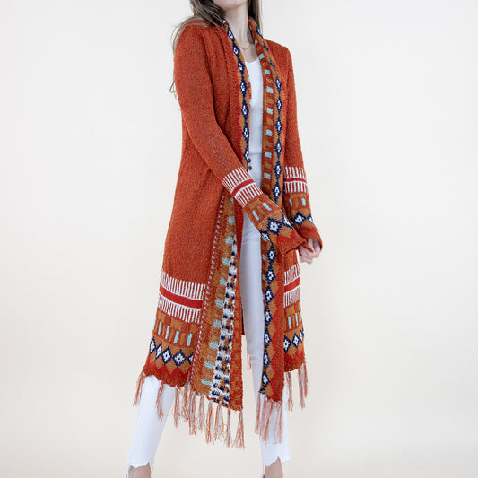 Aztec Bohemian Stripe Pattern Fringed Cardigan FP64092 (2PC)