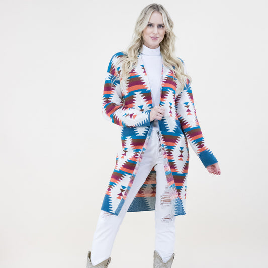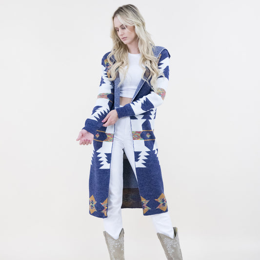 Aztec Print Hoodie Long Cardigan FP64100 (2PC)