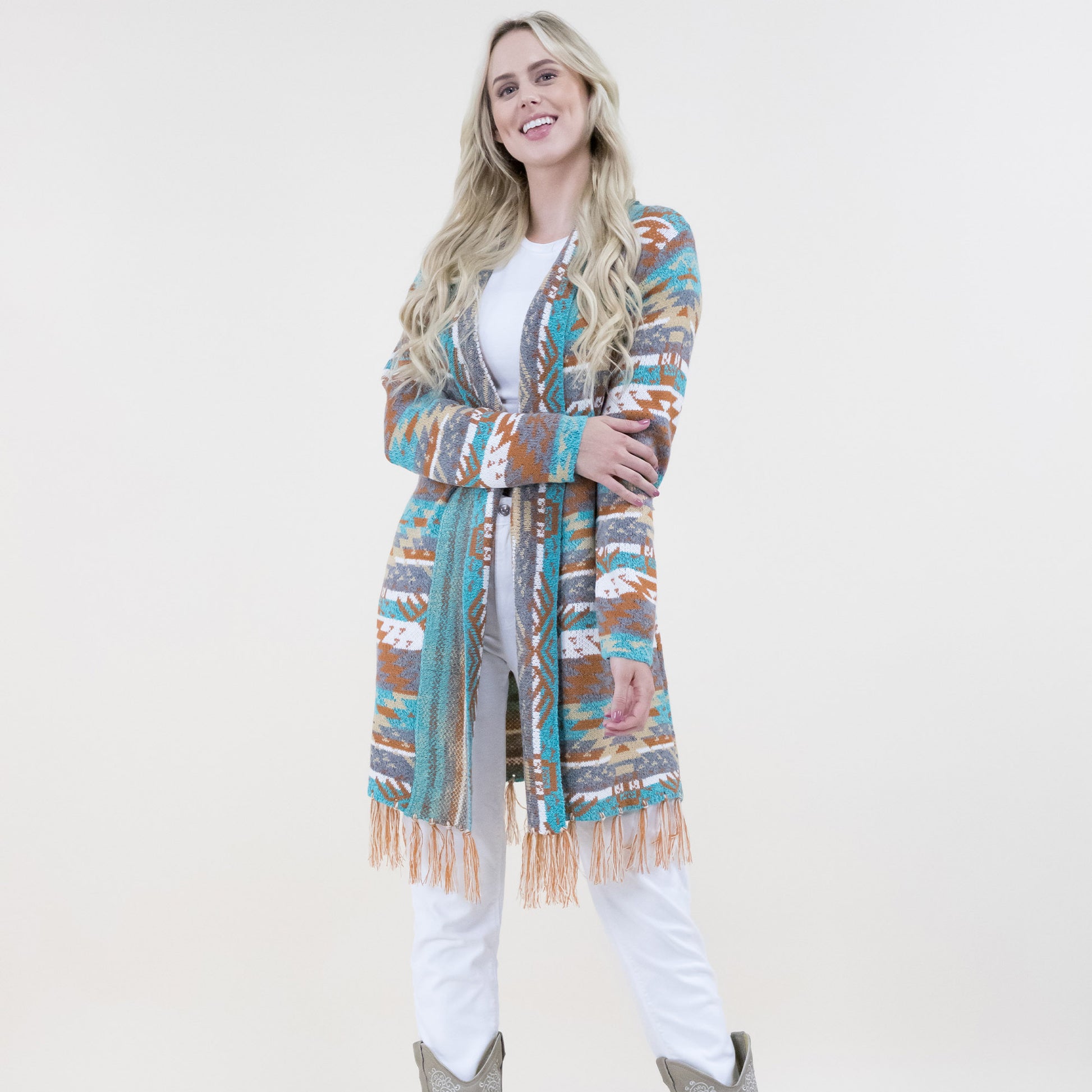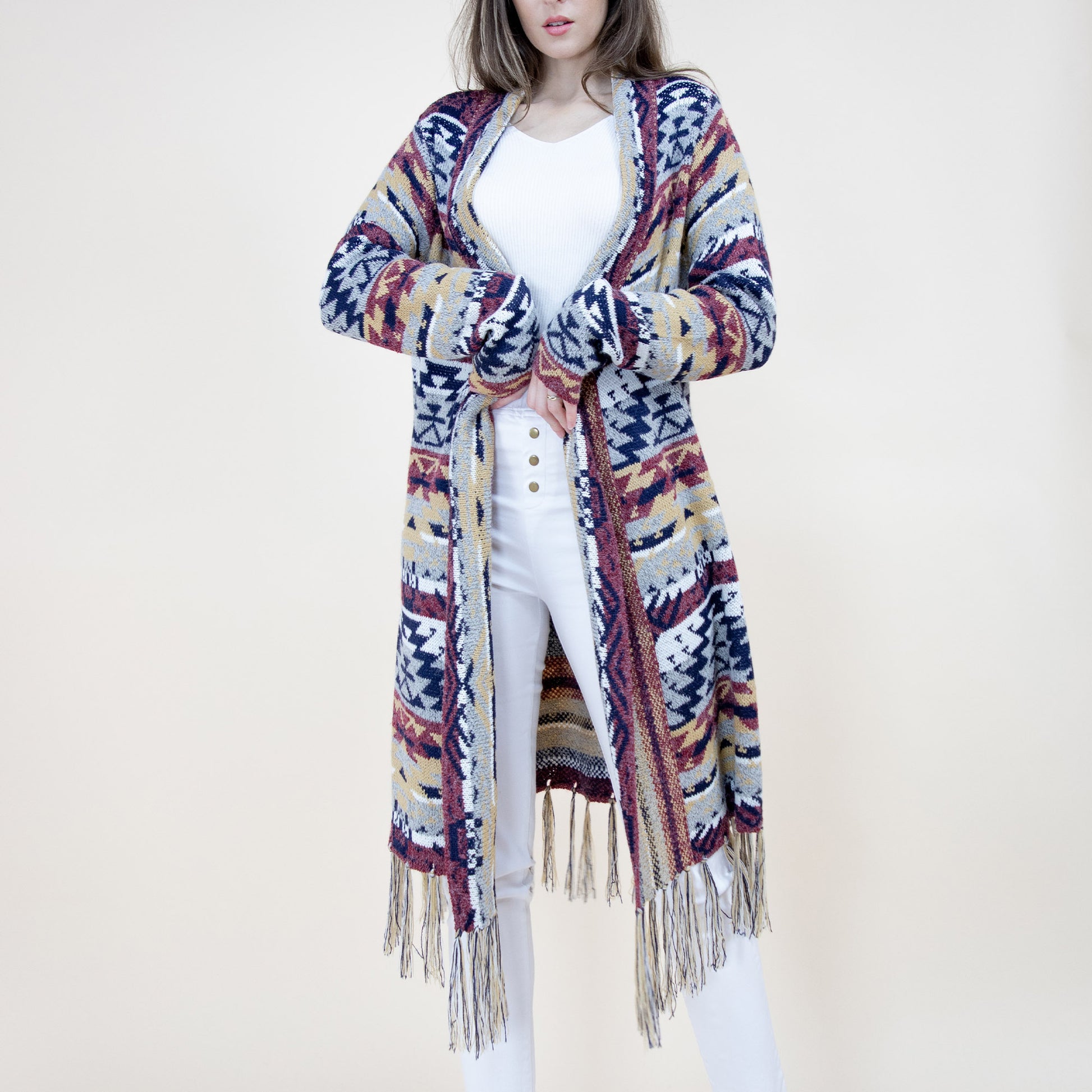 Aztec Bohemian Stripe Pattern Fringed Cardigan FP64092 (2PC)