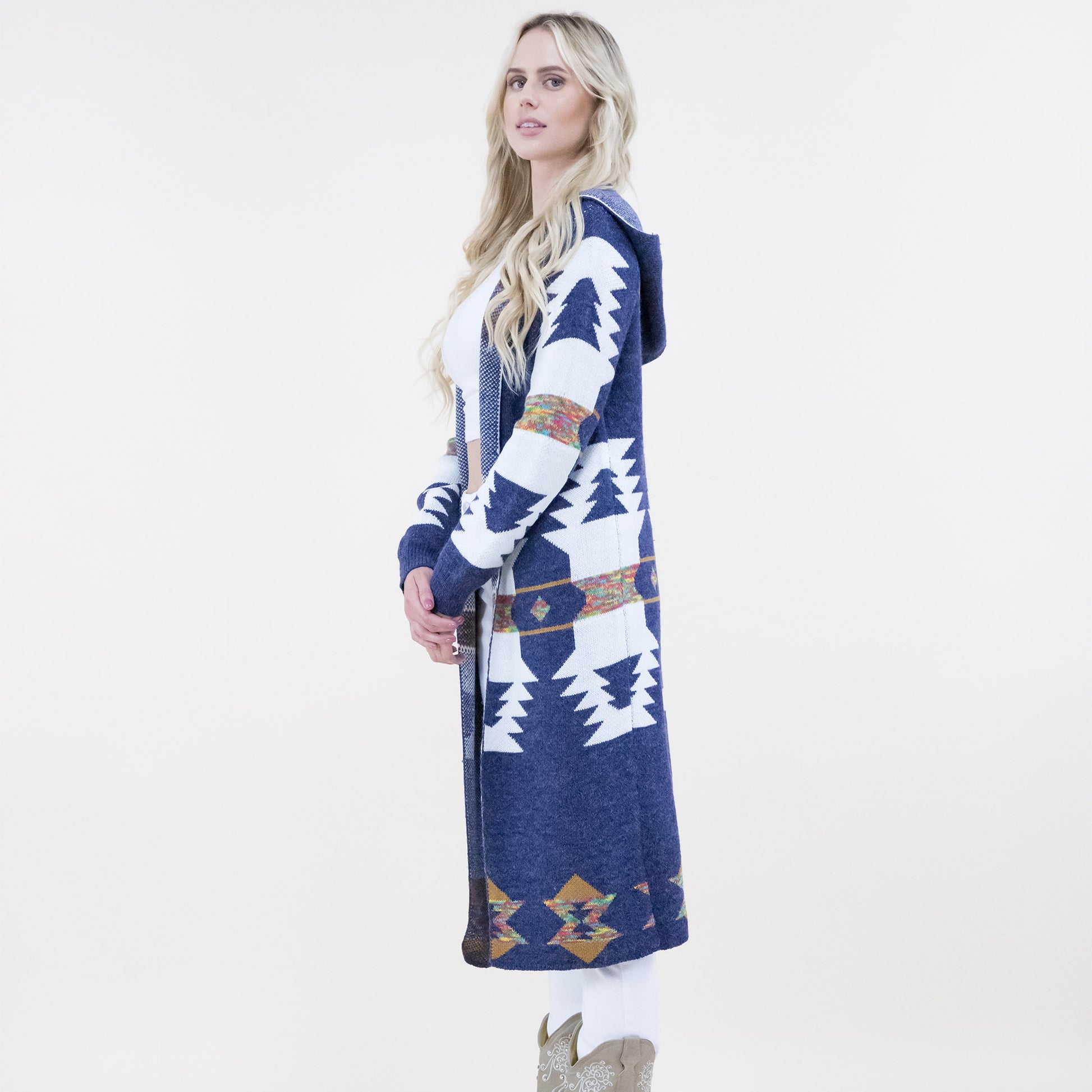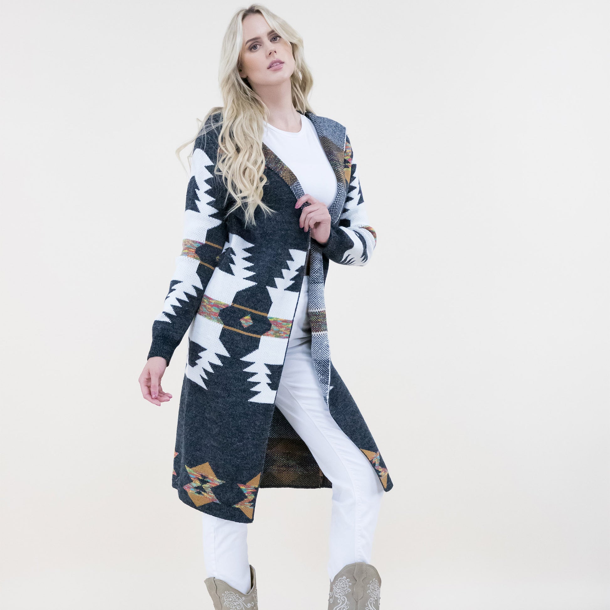 Aztec Print Hoodie Long Cardigan FP64100 (2PC)