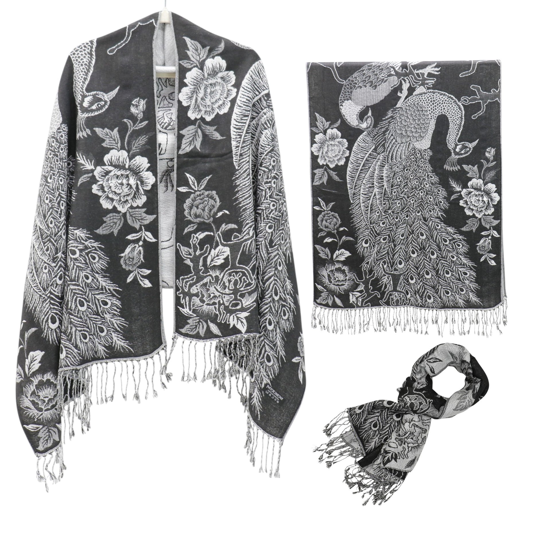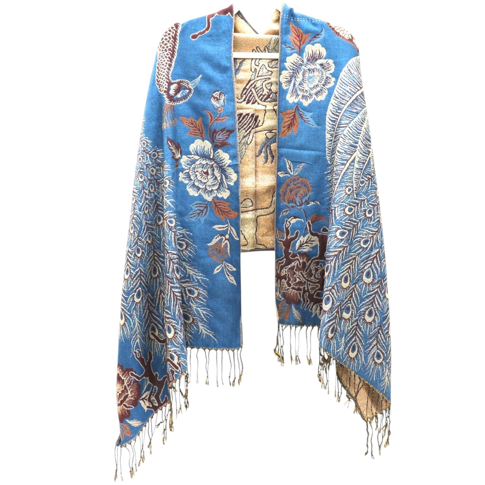 Metallic Pashmina Peacock SCF4815-14 (12pc)