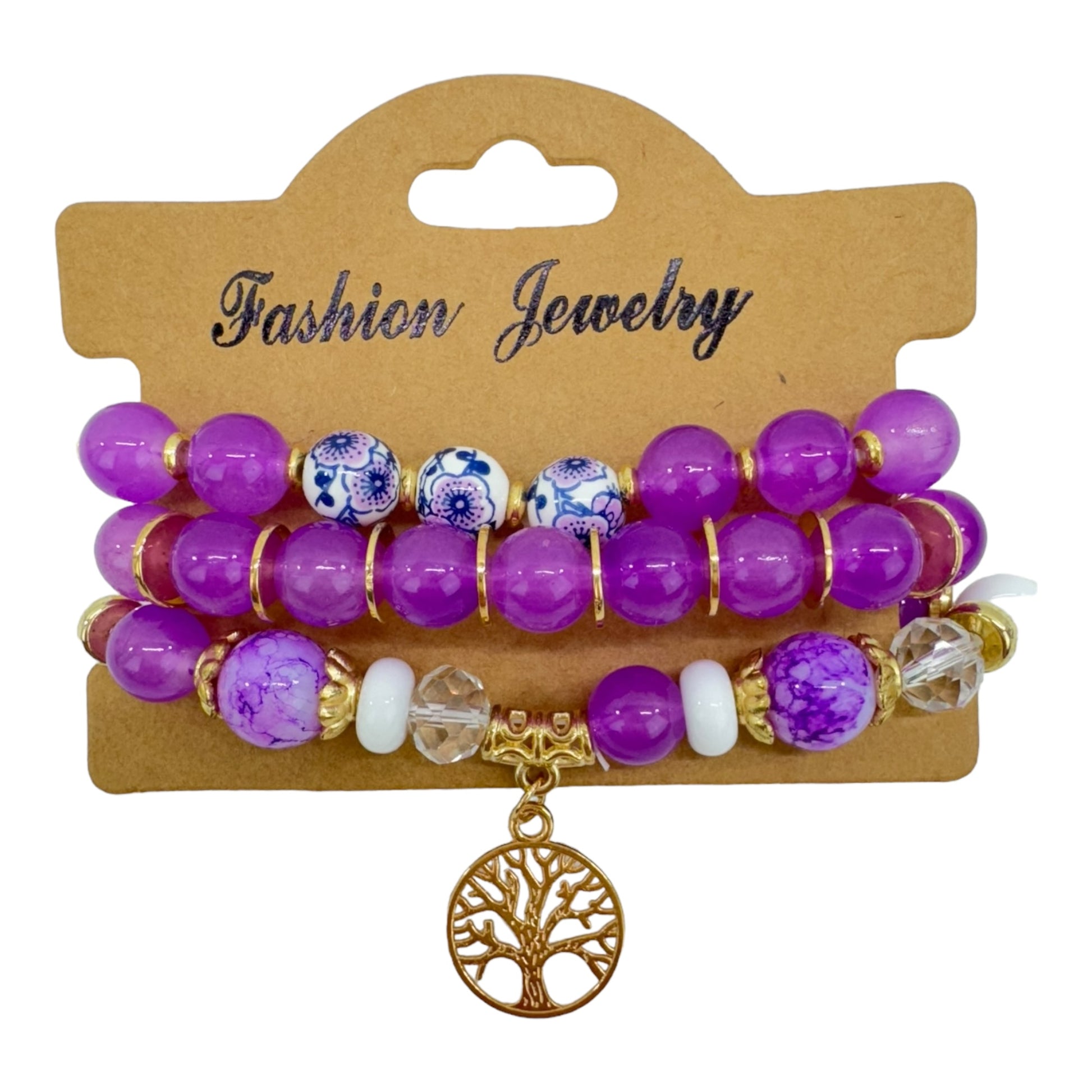 Natural Stone the Tree of Life Charm Bracelet Set BR4228-11 (12PC)
