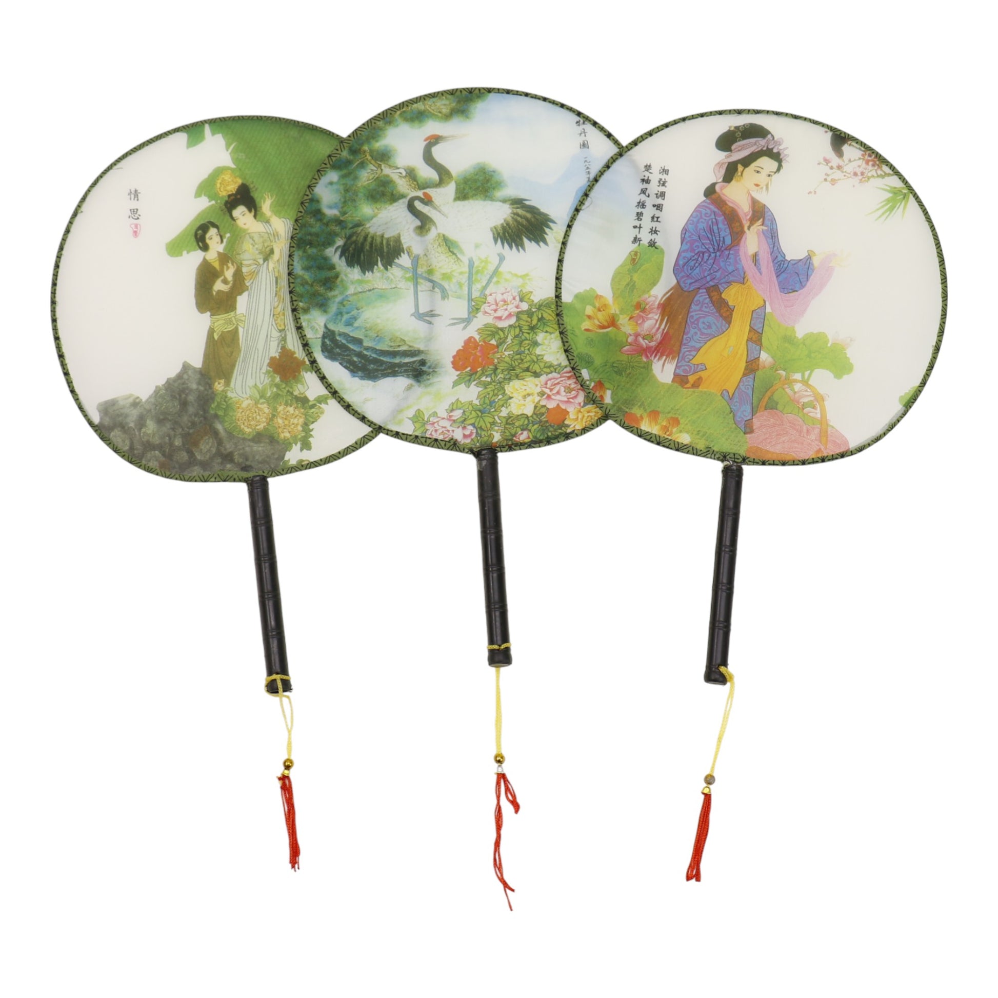 Elegant Vintage Chinese Hand Held Paddle Fan FN9472 (12PC)