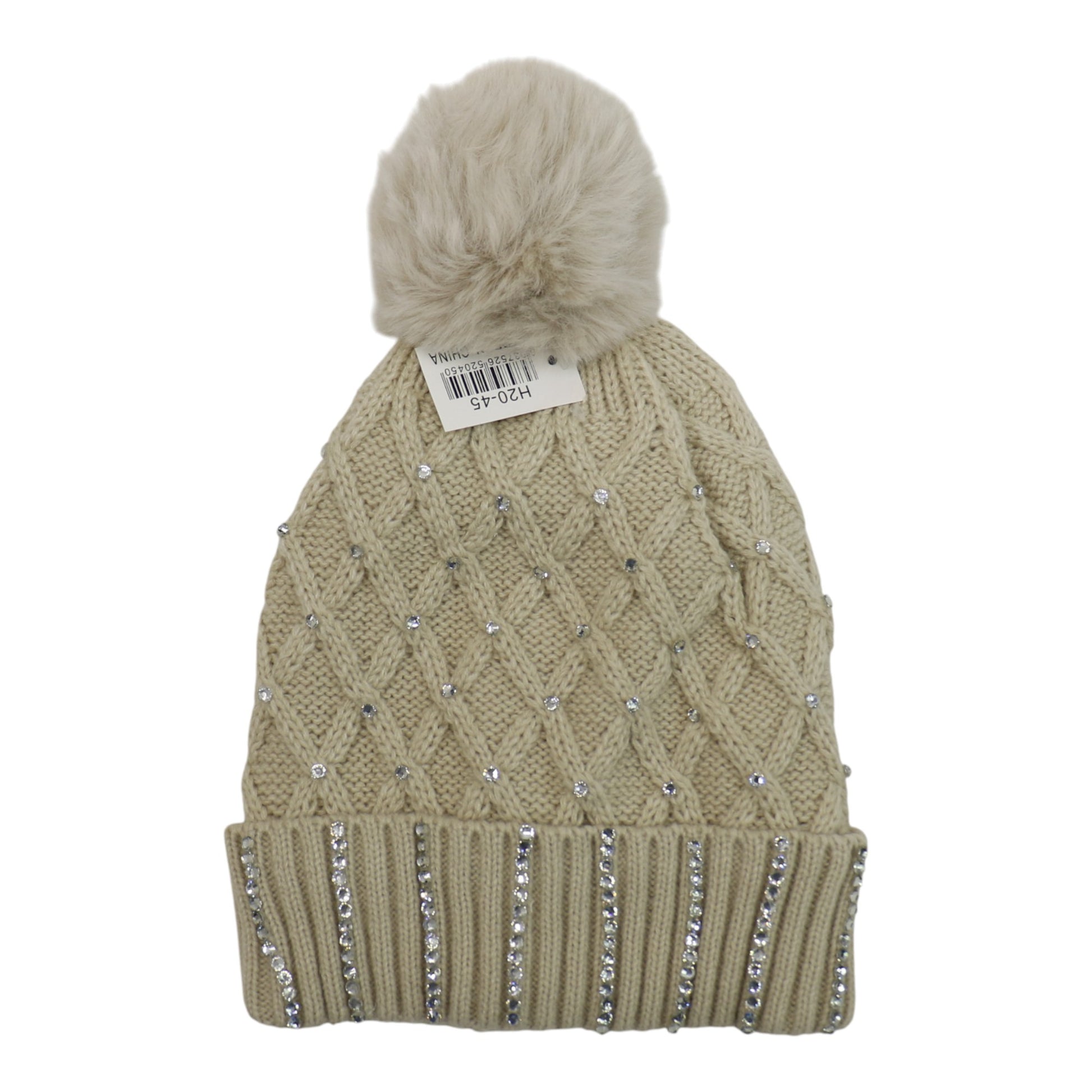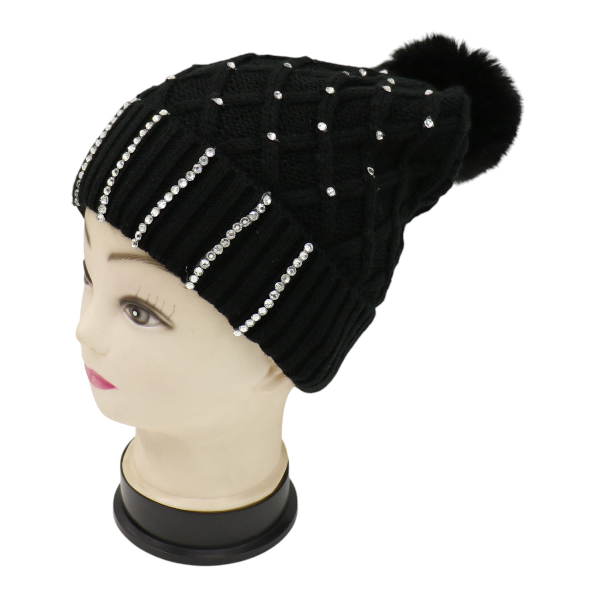 Pom Pom Rhinestone Decor Beanie H20-45. (12PC)
